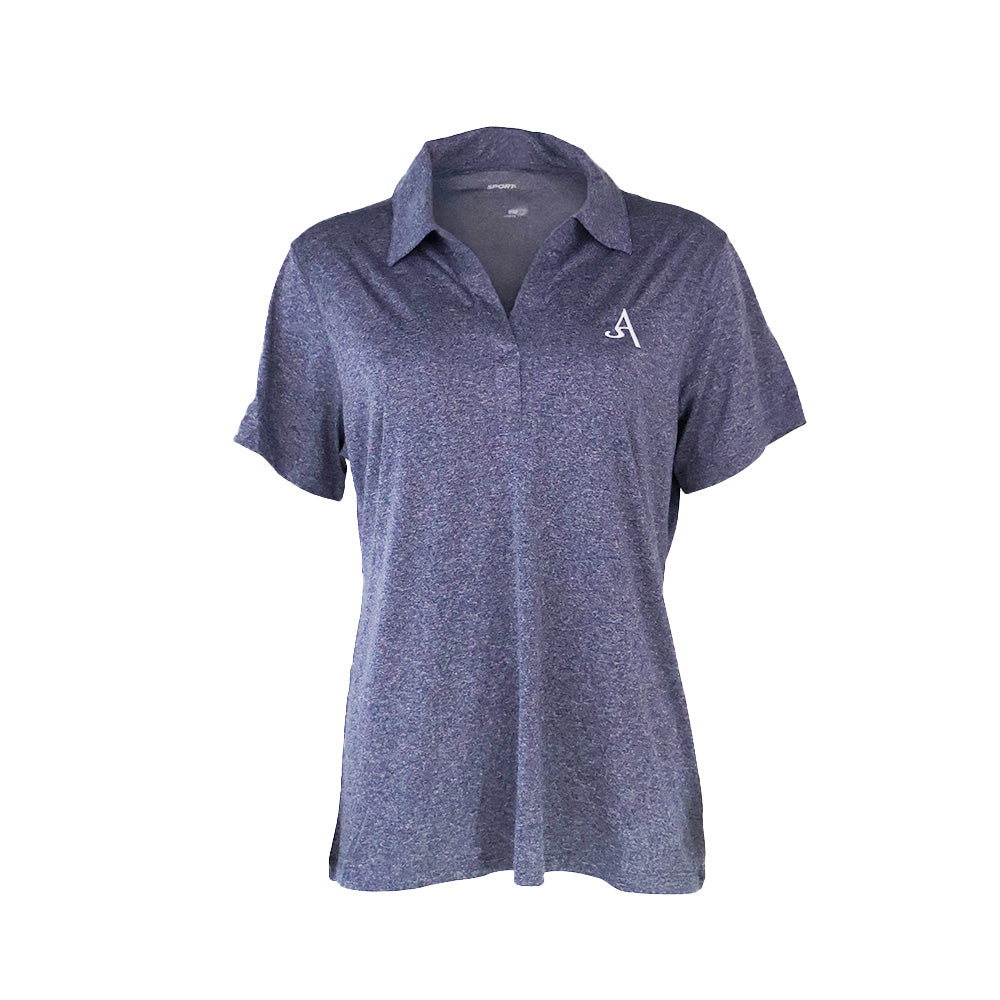 Style: women's heathered navy polo shirt